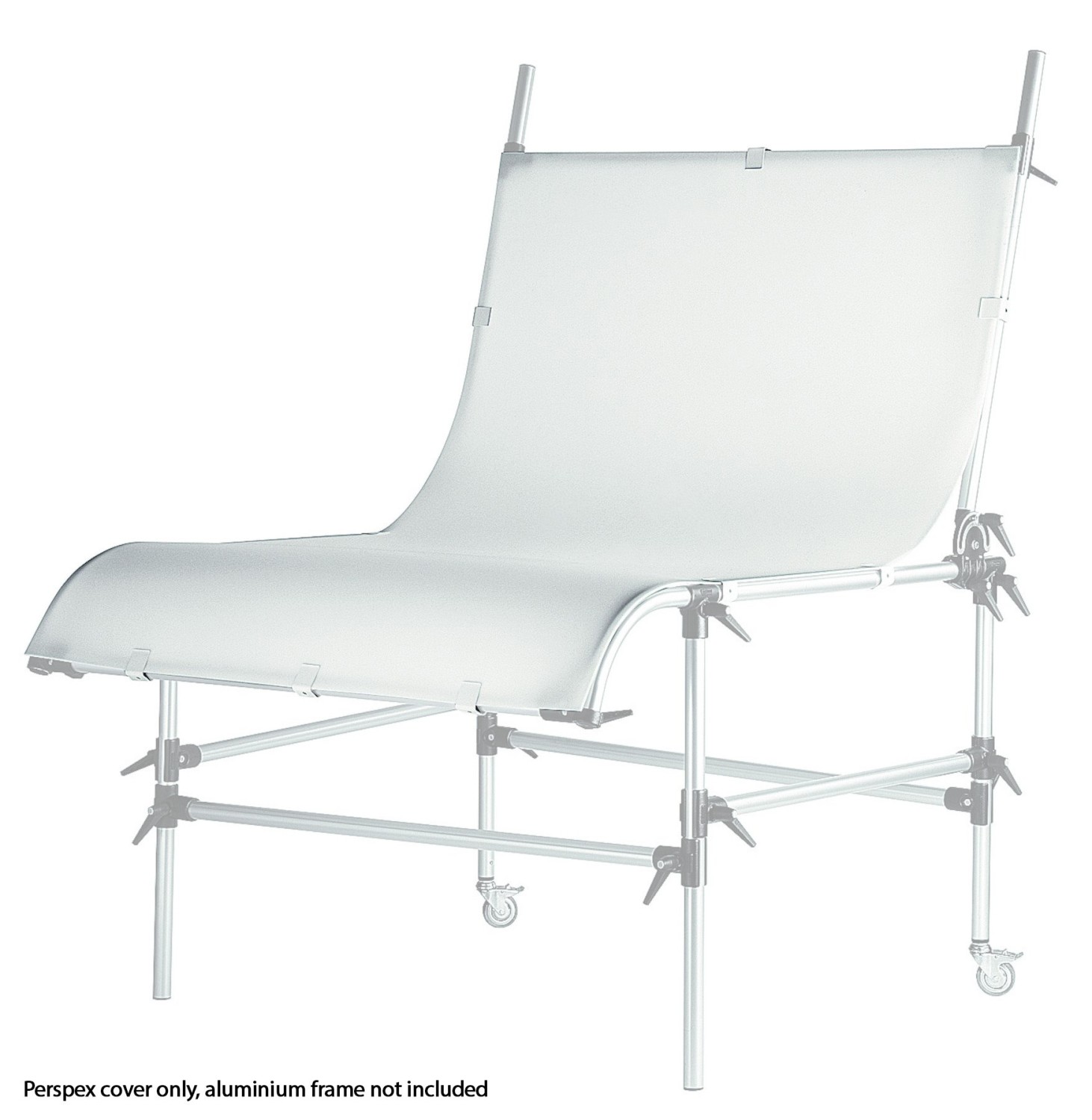The Manfrotto 220PX Perspex Cover is the essential translucent accessory that transforms the Manfrotto 220 and 220B Still Life Tables into a professional backlit or front-lit shooting surface. Made from high-quality white translucent plexiglass, the 200 × 122 cm panel evenly diffuses light from below or behind, eliminating hotspots and producing clean, shadowless results with pure white infinity backgrounds.