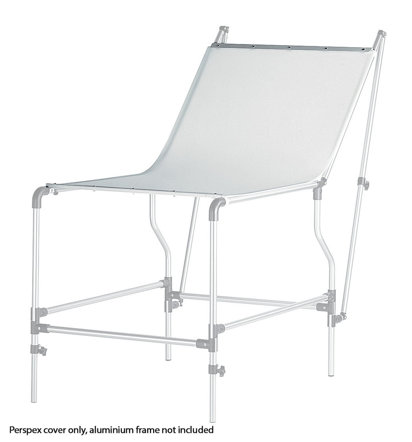 The Manfrotto 320PX is a large 150 × 78 cm white translucent Perspex (acrylic) panel designed as a replacement or additional diffuser/cover for the Manfrotto 320 and 320B Mini Still-Life Tables, enabling perfect back-lit product shots with soft front or backlight illumination.