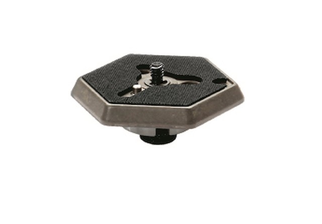 The Manfrotto 030VHS-14 is the classic replacement quick-release plate for Manfrotto’s vintage RC0 hexagonal quick-release system. It features a 1/4"-20 camera screw and a retractable VHS locating pin (anti-rotation pin) that locks into corresponding holes on video heads, guaranteeing the camera or camcorder cannot twist on the head – essential for stable video recording and precise panoramas. The durable aluminum hexagonal shape fits securely into RC0-compatible heads without play.