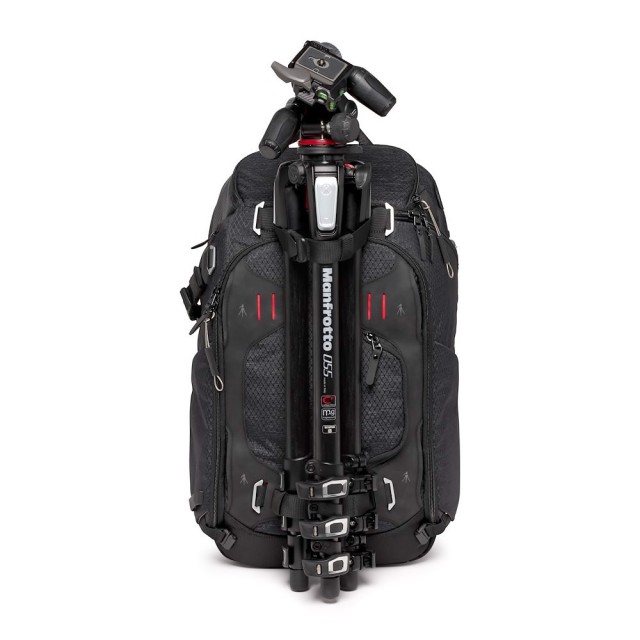 It also offers a side attachment that can carry a full-sized tripod (up to the 055 series) and a front attachment that can be split into 2 to carry monopods or small light stands. It also features a checkpoint friendly 15” laptop compartment, adjustable torso height, double chest straps and a padded waist belt for load distribution.