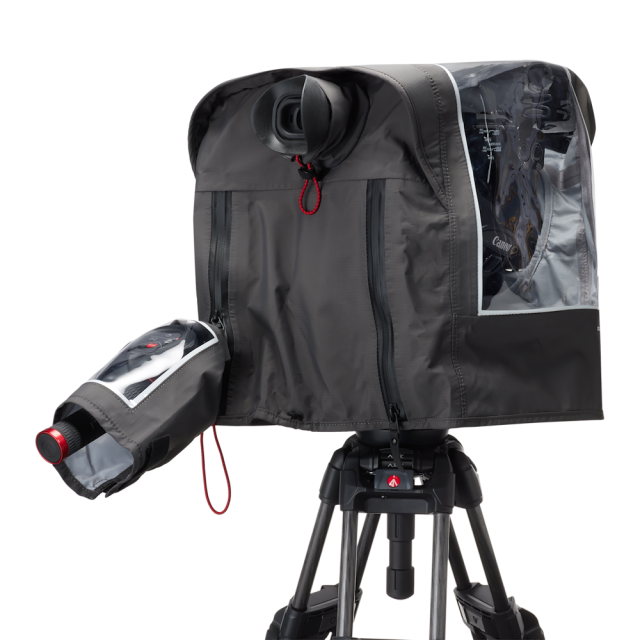 The Manfrotto Pro Light Cineshield M/L is a professional rain cover tailored for medium to large camcorders, safeguarding your camera, microphone, external monitor, transmitter, and other accessories from adverse weather. Crafted from a three-layer material with heat sealing and minimal stitching, it offers superior water resistance and durable protection.
