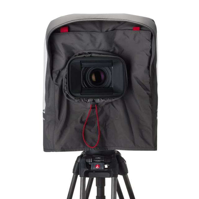 The Manfrotto MB PL-CS-ML Pro Light Cineshield M/L is a rain cover designed to protect medium to large camcorders and accessories from rain, featuring a transparent window for full camera control and a compact foldable design.