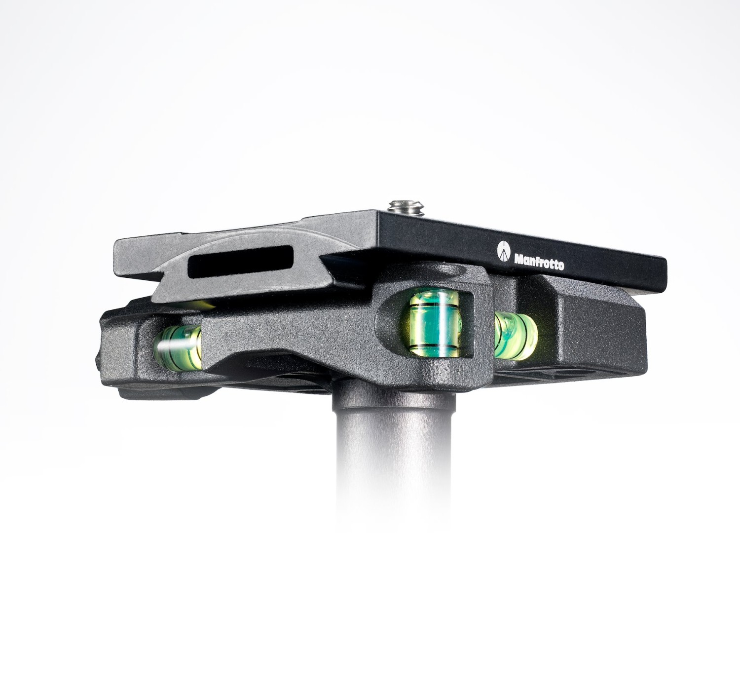 The Manfrotto MSQ6 Q6 Top Lock Quick Release Adaptor is a 180 g aluminum Arca-compatible clamp with drop-in top-loading plate, auto-safety pin, triple bubble levels (one per axis), and 10 kg payload—upgrading select Manfrotto heads (MH054/055/057, 468MG, XPRO-BHQ2) for fast, ultra-secure heavy-pro camera swaps.