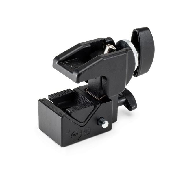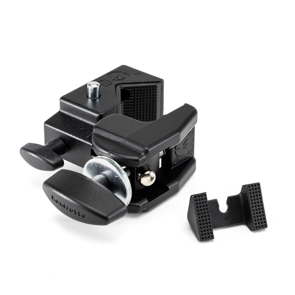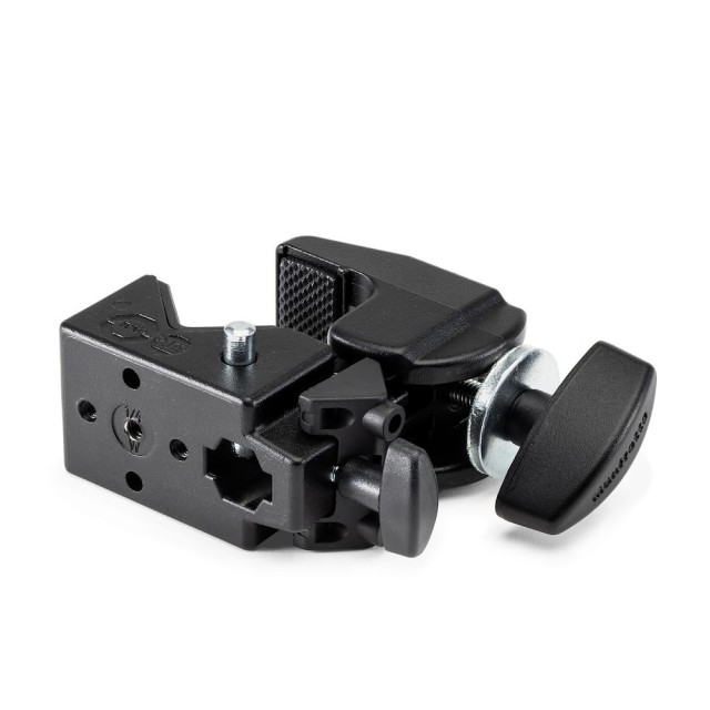 The Manfrotto Quick Action Super Clamp is an intuitive, Italian-designed mounting powerhouse (0.488 kg) that securely grips tubes or plates from 13–55 mm with a rapid-locking jaw and included flat-surface wedge, supporting up to 15 kg via a 5/8" (16mm) Baby socket; perfect for studio or location use, it functions as a clamp, stand, or creative extension—mounting…