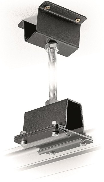 The FF3214B is the ready-to-install ceiling suspension kit for Manfrotto’s legendary overhead rail system. The top plate screws securely into joists or concrete with four heavy-duty fixings, the 1 m M12 threaded rod (easily cut to length) drops down, and the lower rail bracket is trapped and finely adjusted using the supplied M12 nuts. Once the full rail run is hung, final leveling is achieved simply by tweaking the nuts at each bracket—critical for smooth pantograph and carriage movement. One kit is required approximately every 2 m and mandatory at every rail joint (when using FF3208 connectors).