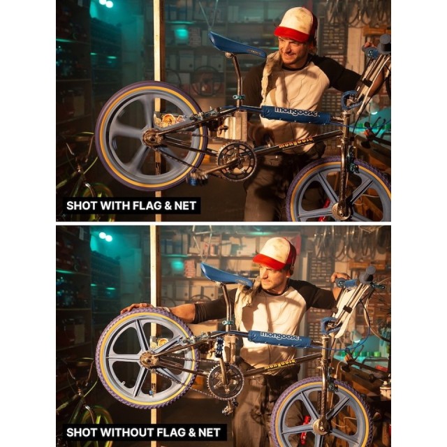 Flags and scrims are an essential lighting control tool on any set, whether it be photography, video, or a full-scale cinema production. They help to diffuse, stop down, cut or even block light, allowing the content creator to compose their lighting set up perfectly to achieve their desired lighting effect and bring their creative vision to life.