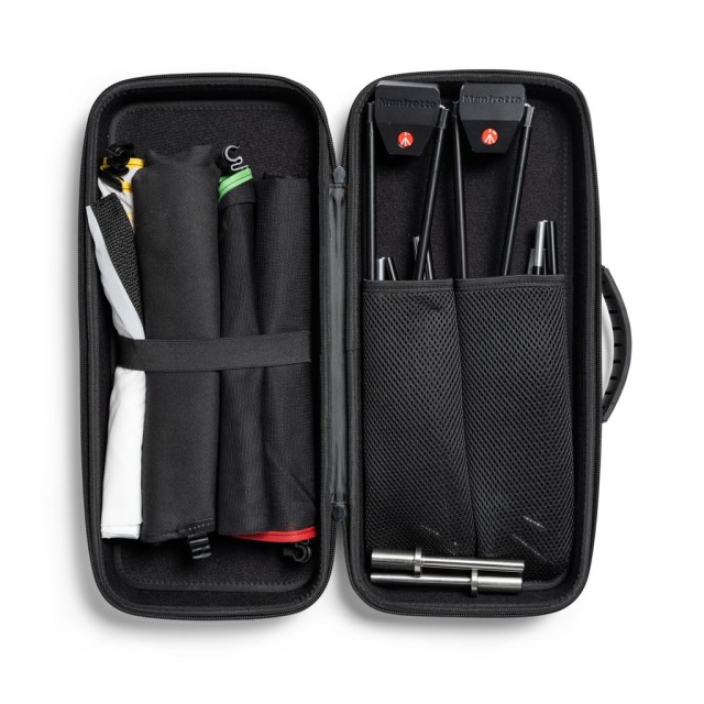The sturdy case with internal compartments ensures that everything stays securely in place ready for the next shoot, aiding quick assembly and improving workflow.