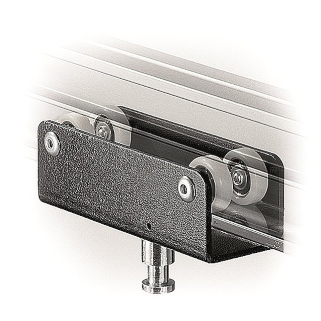 As a core component of Manfrotto's Sky Track overhead rail system, the Sliding Carriage provides seamless, brake-free mobility for dynamic studio setups, allowing quick and quiet repositioning of lighting fixtures, camera booms, or other gear along aluminum tracks without interruptions. Featuring four durable wheels for frictionless gliding and an integrated 16mm spigot compatible with standard 5/8" junior receivers, it securely supports normal studio loads up to 132 lbs (60 kg), making it ideal for photography, video production, and broadcasting environments that require precision and efficiency. At a featherlight 0.22 kg, this professional-grade accessory installs effortlessly on fixed or mobile rails, enhancing workflow by enabling free-sliding movement while maintaining safety and stability. Constructed from high-quality aluminum and composites for long-term durability, it complements other Sky Track elements like addalites or fixed clamps, offering versatile, unobtrusive support in grid systems—backed by Manfrotto's warranty for defect-free performance and reliability in demanding professional applications.