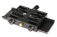 The Manfrotto 357PLV-1 (also marked 357PLV) is the classic long sliding quick-release plate with 80 mm of travel, supplied with both 1/4″-20 and 3/8″-16 camera screws, rubber grip strips, and a removable/retractable VHS anti-rotation pin. It is the standard plate for all Manfrotto 357-system video heads and allows perfect fore-aft balance of heavy…