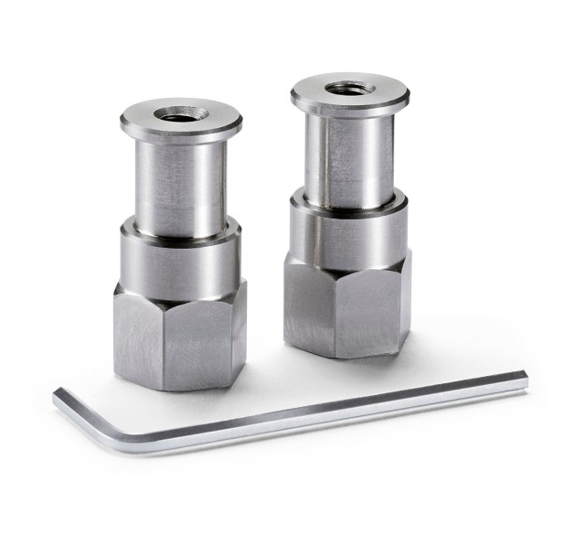 Upgrade your 244-series arms with the Manfrotto 244ADPT58 spigot adapters—two precision-machined aluminum 5/8" (16 mm) baby studs, each tipped with a 1/4"-20 male thread for universal compatibility. The hex-shaped body locks into the arm’s socket and secures with the supplied 3 mm hex key, transforming compact friction arms into full-size grip points for C-stands, clamps, or super clamps. Ideal for mounting small LED panels, on-camera monitors, or lightweight fixtures in tight spaces. At just 73 g per pair, they add negligible weight while expanding rigging options for video, macro product shots, or studio overheads.