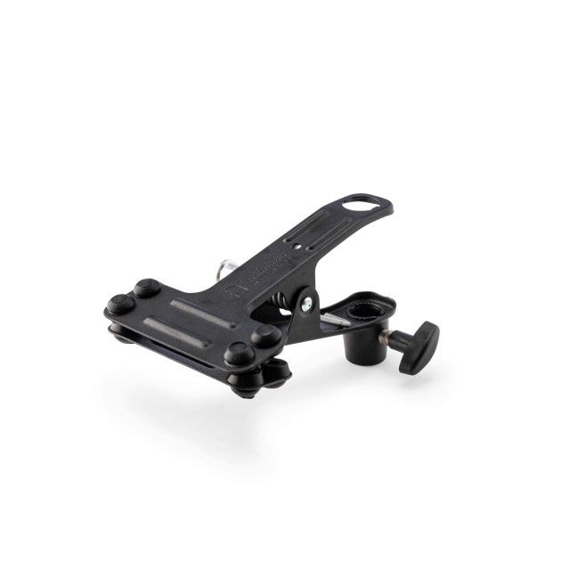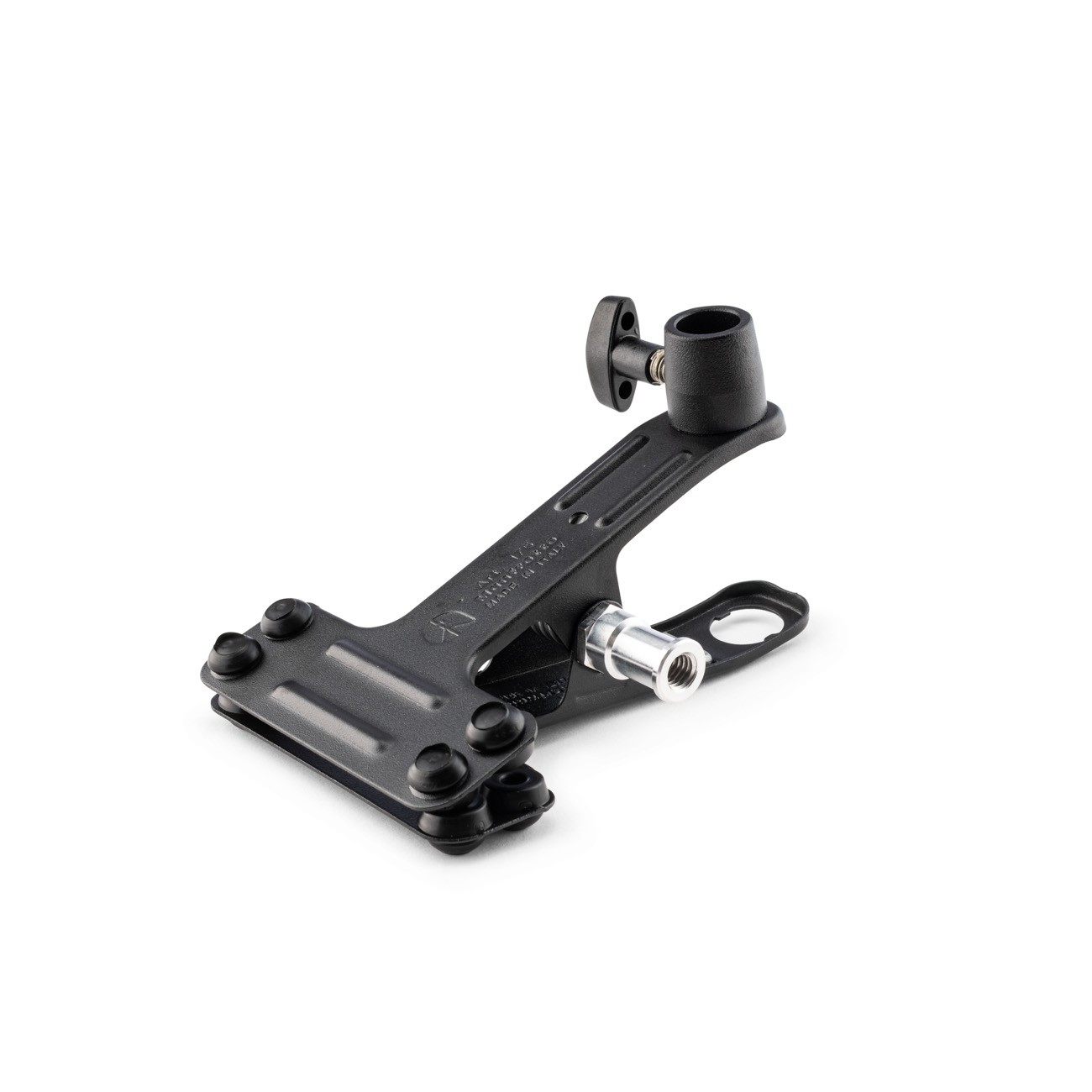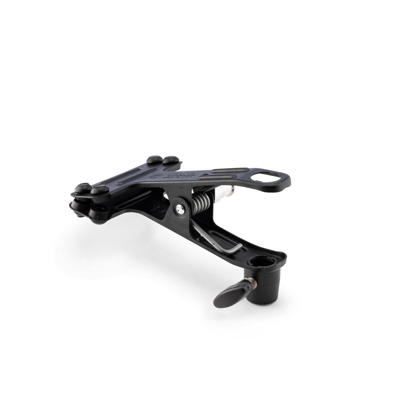 The Manfrotto 175Z is one of the most versatile pieces of grip gear ever made. Its powerful spring jaws open to 40 mm and are lined with protective rubber pads, while one handle features a built-in 16 mm Baby stud with a 1/4″-20 threaded socket—allowing instant attachment of ball heads, small lights, gooseneck arms, or anything with a 1/4″ screw. Photographers use it to hold reflectors, flags, background paper, or to create quick overhead rigs by clamping to shelves, doors, or light stands. Lightweight, compact (15.6 cm closed), and built to last, it’s the clamp that lives permanently in every pro’s kit bag.