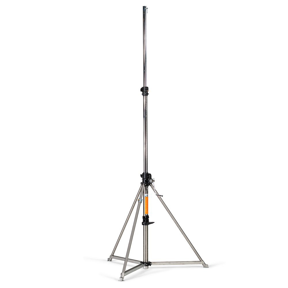The Manfrotto 387XU Stainless Steel Super Wind Up is the ultimate heavy-lift studio stand: a TÜV-certified, 80 kg-capacity, 3.66 m chrome-plated beast with triple geared wind-up columns (70/60/50 mm), two risers, a leveling leg, and an 180 cm footprint.