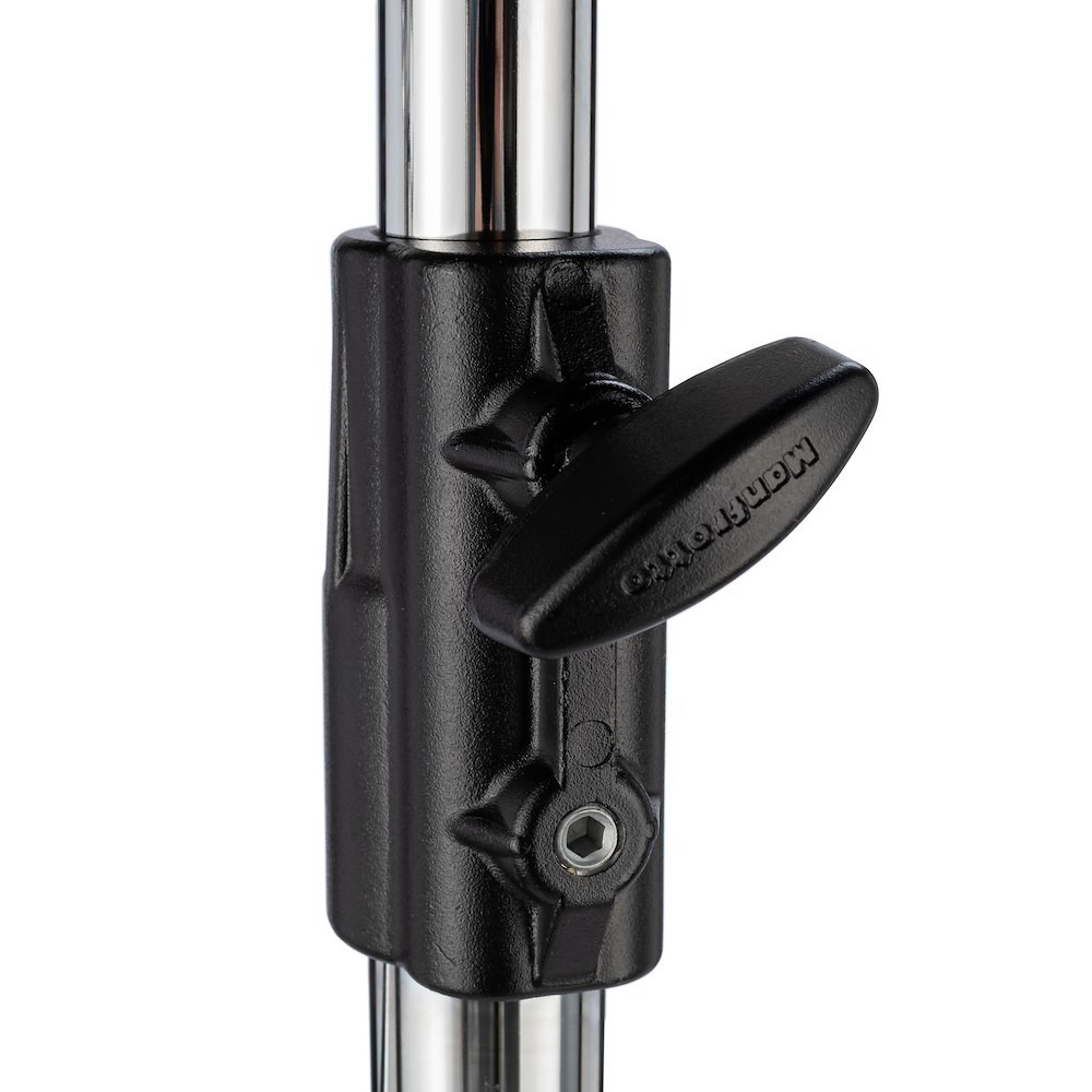 The Manfrotto 142CS is a heavy-duty chrome-steel 2-section extension pole (125–210 cm) that mounts directly onto any Junior (28 mm) receiver stand or C-stand to safely add up to 85 cm of extra height. With thick 35 mm and 30 mm steel tubes and a universal top featuring a 28 mm Junior socket + 16 mm Baby stud + 3/8″ thread, it’s the classic Hollywood…