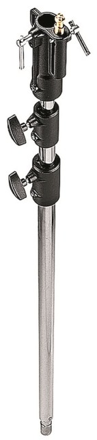 The Manfrotto 146CS is a heavy-duty 3-section chrome steel stand extension (Ø35/30/25 mm) that adds 1.4–3.14 m height to any high-duty stand with a 5/8" baby receiver—locking via two riser collars in a robust 4.8 kg package for overhead rigs or tall lighting.
