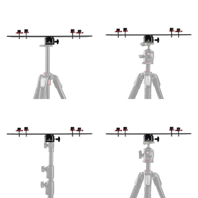 Multiple mounting options via the included adapter fitted underneath the deck featuring: 16 mm (5/8”) female socket, 1/4'''' and 3/8” threaded holes and Arca-Swiss compatibility, enabling the user to shoot unrestrained and work with their preferred photo or lighting support.