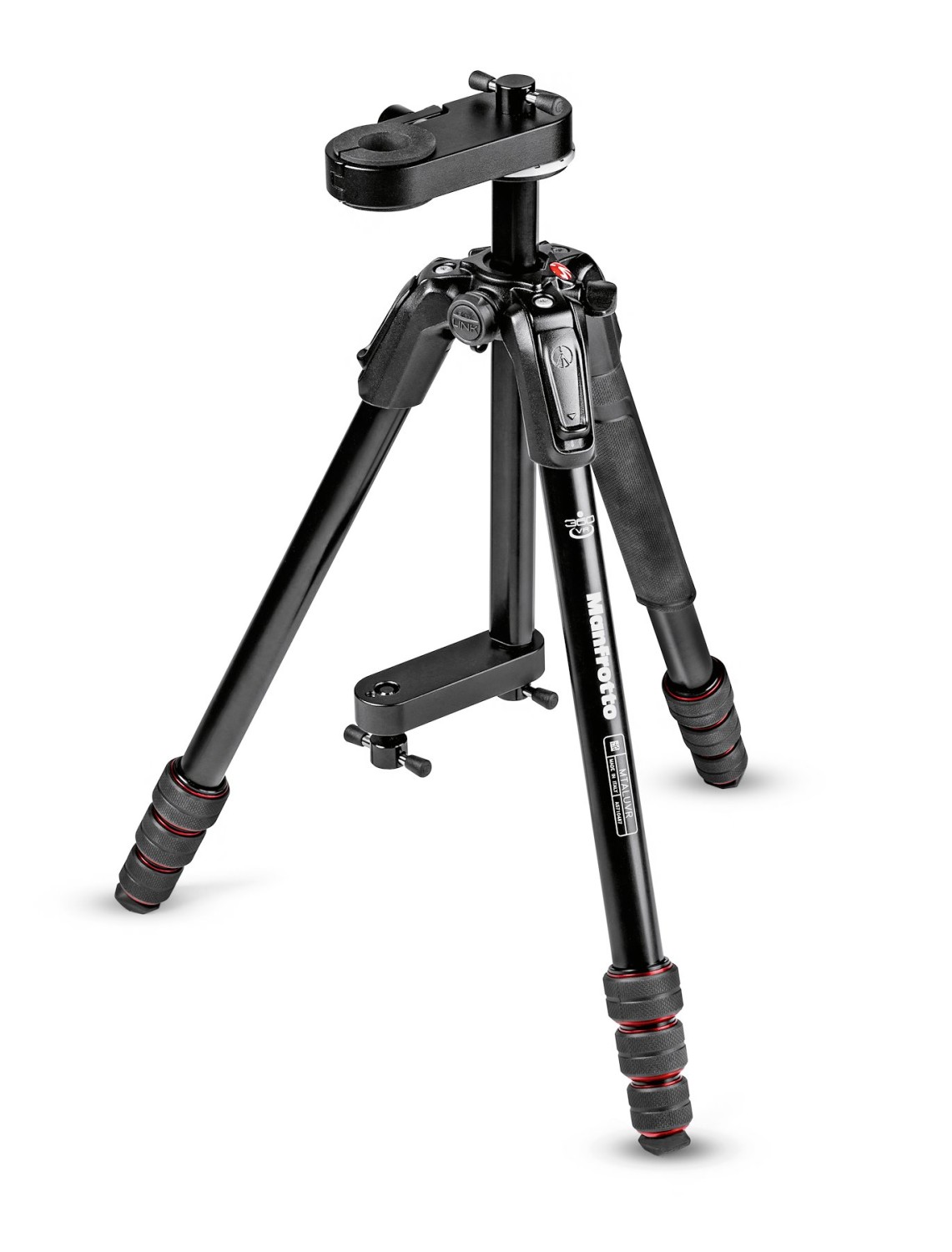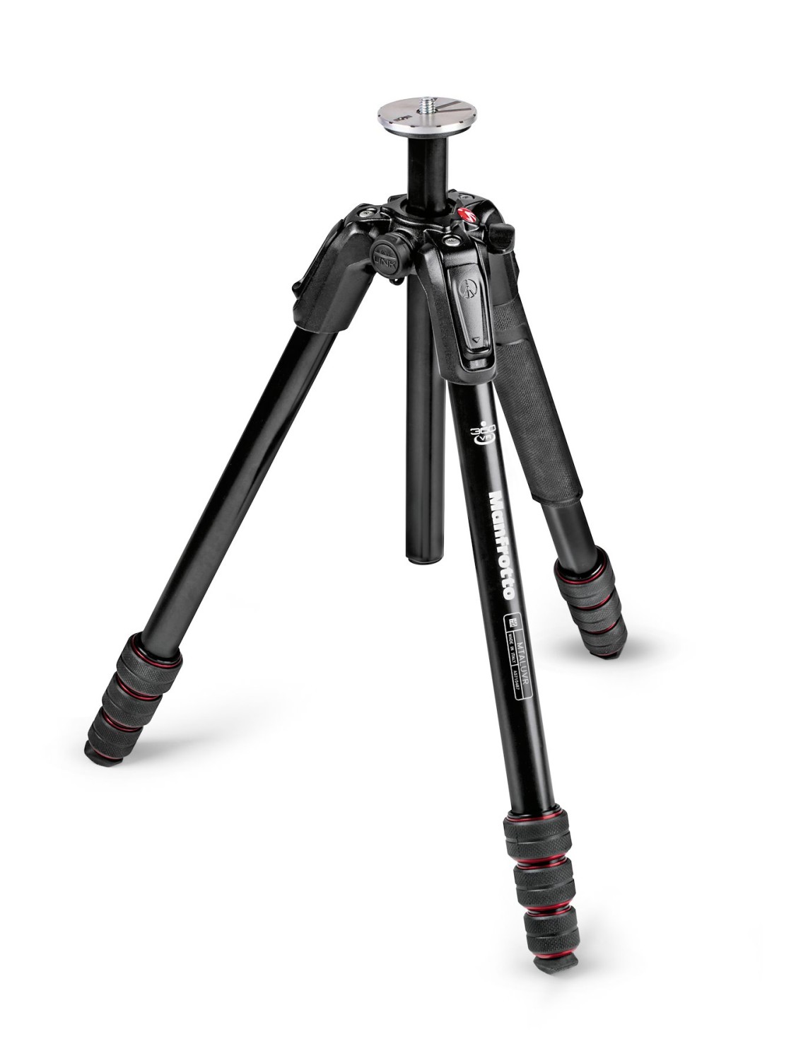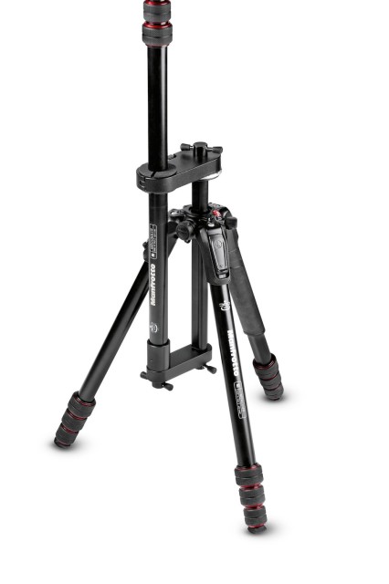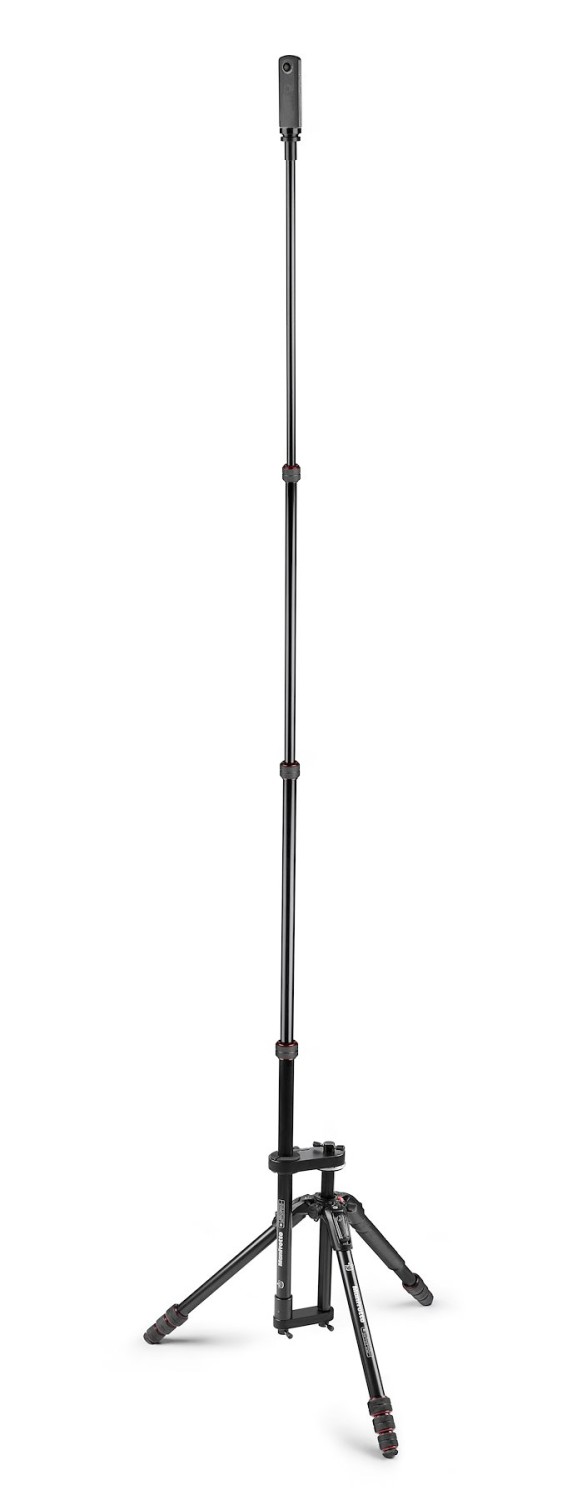 The Manfrotto MTALUVR is a robust yet lightweight 4-section aluminum tripod purpose-built for 360° and VR photography, supporting up to 15.4 lb (7 kg) either directly on its extendable center column or via the included side clamps that securely grip a separately purchased extension boom pole for elevated overhead shots.