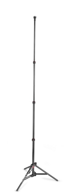 The Manfrotto VR Complete Aluminum Stand is a comprehensive tripod kit designed to support 360° cameras. The base has a leveling foot that ensures quick leveling, so you're ready to shoot whenever you need to. It comes with a built-in aluminum extension column that features the M-lock system, a quick-release mechanism that secures and releases the four sections. The column has double interchangeable threads at the top: by simply unscrewing the top screw, users can easily and quickly switch between 1/4 and 3/8 accessories depending on the type of 360° device they want to use.