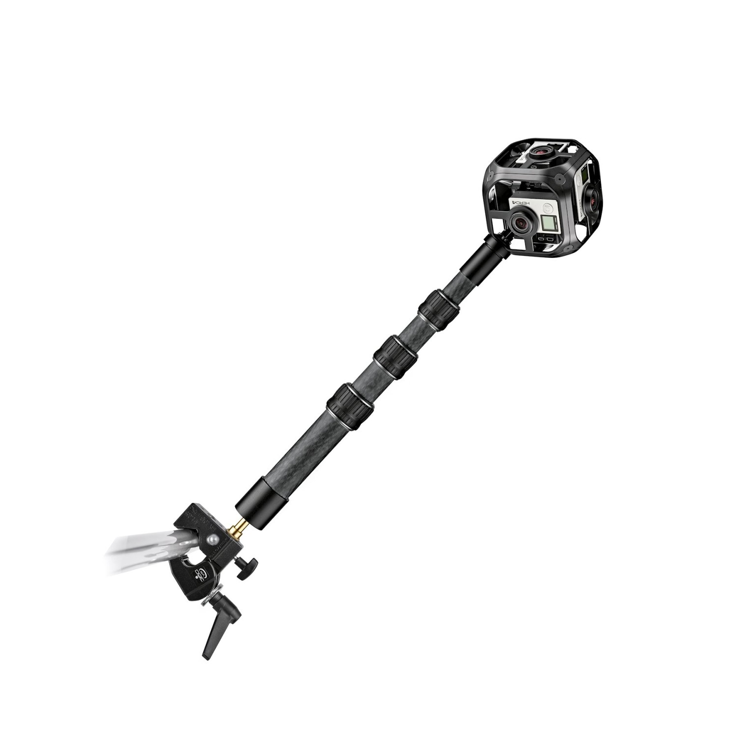 The Manfrotto MBOOMCFVR-S is an ultra-light, small carbon fiber VR extension boom pole that extends from 33 cm to 80 cm, securely supports 360° and VR cameras up to 2 kg, and features vibration-damping carbon tubing, quick anti-twist rotary locks and multiple top mounting options (1/4″ and 3/8″ threads) for effortless overhead and elevated shooting.
