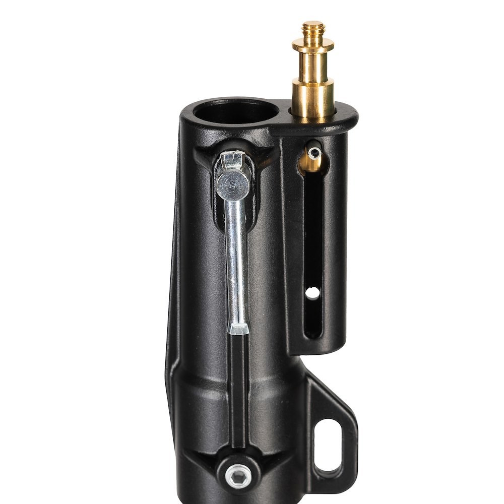 Designed for challenging environments, the stand includes a levelling leg to maintain stability on uneven terrain, ensuring safe and secure operation even with heavy loads. Universal top attachments—including a 16mm male stud, 16mm female socket, and 3/8″ screw—provide broad compatibility with professional lighting and grip equipment. Optional wheels can be added for enhanced mobility in studio environments. With its robust construction, high payload capacity, and professional certifications, the 087NWB is a trusted solution for serious production workflows.