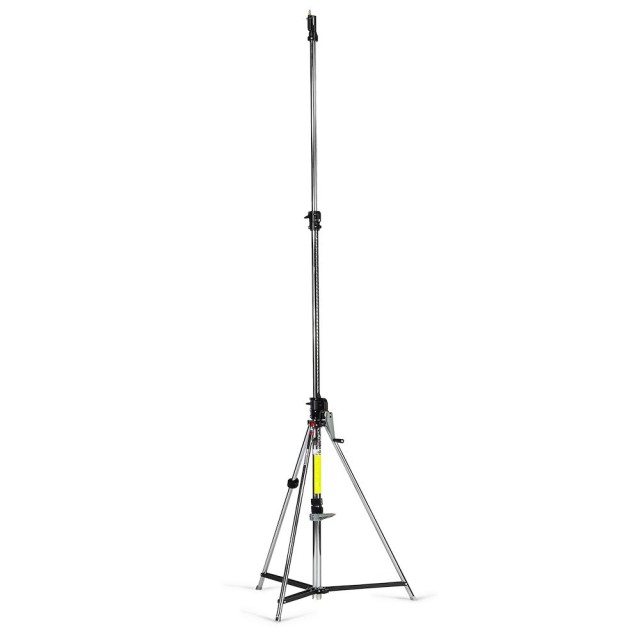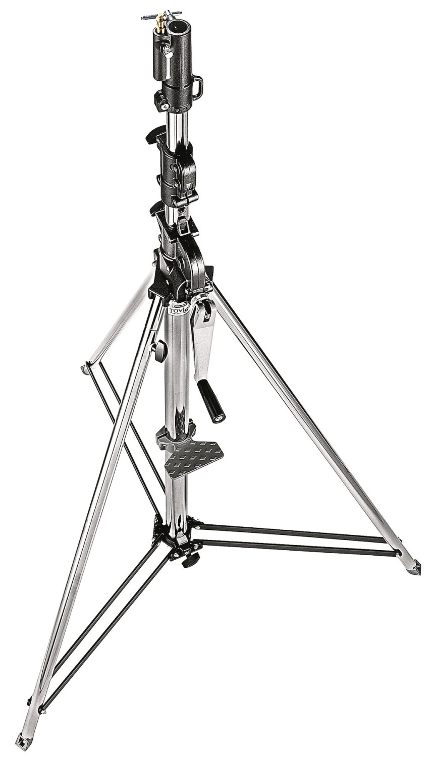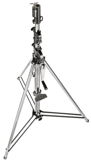 The Manfrotto 087NW is the flagship heavy-duty chrome-steel wind-up stand with geared column, reaching an impressive 370 cm while safely supporting 30 kg via its hand-cranked stainless-steel cable system and unique safety-release clutch. Complete with one leveling leg, universal top stud/socket and TÜV-certified construction, it’s the gold-standard studio and location stand for large HMIs, overhead frames, big softboxes or any rig that demands height and stability.