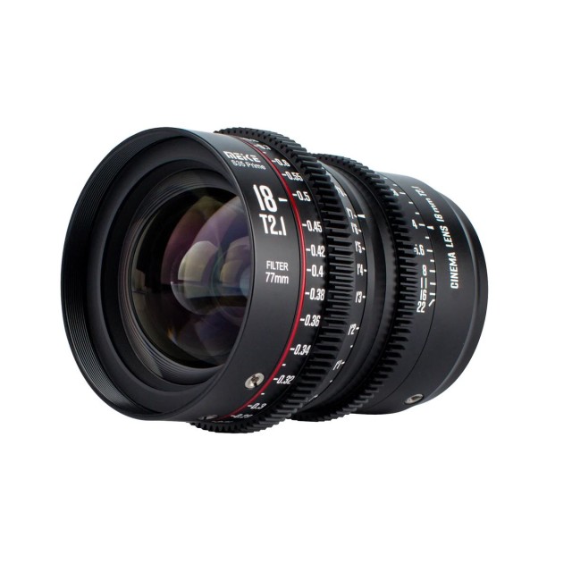 The fifth cine lens of Meike in Super 35 Prime Cine Lens Series: 18mm T2.1. With a image circle of 33.6 mm,this lens compatible with Super 35 cameras,and it will be available in two lens mounts,PL/EF. This lens is one of Meike's cine lens in new Super35-Prime Cine Lens Series. It has industry-standard 0.8mm pitch gears on the focus and aperture ring.