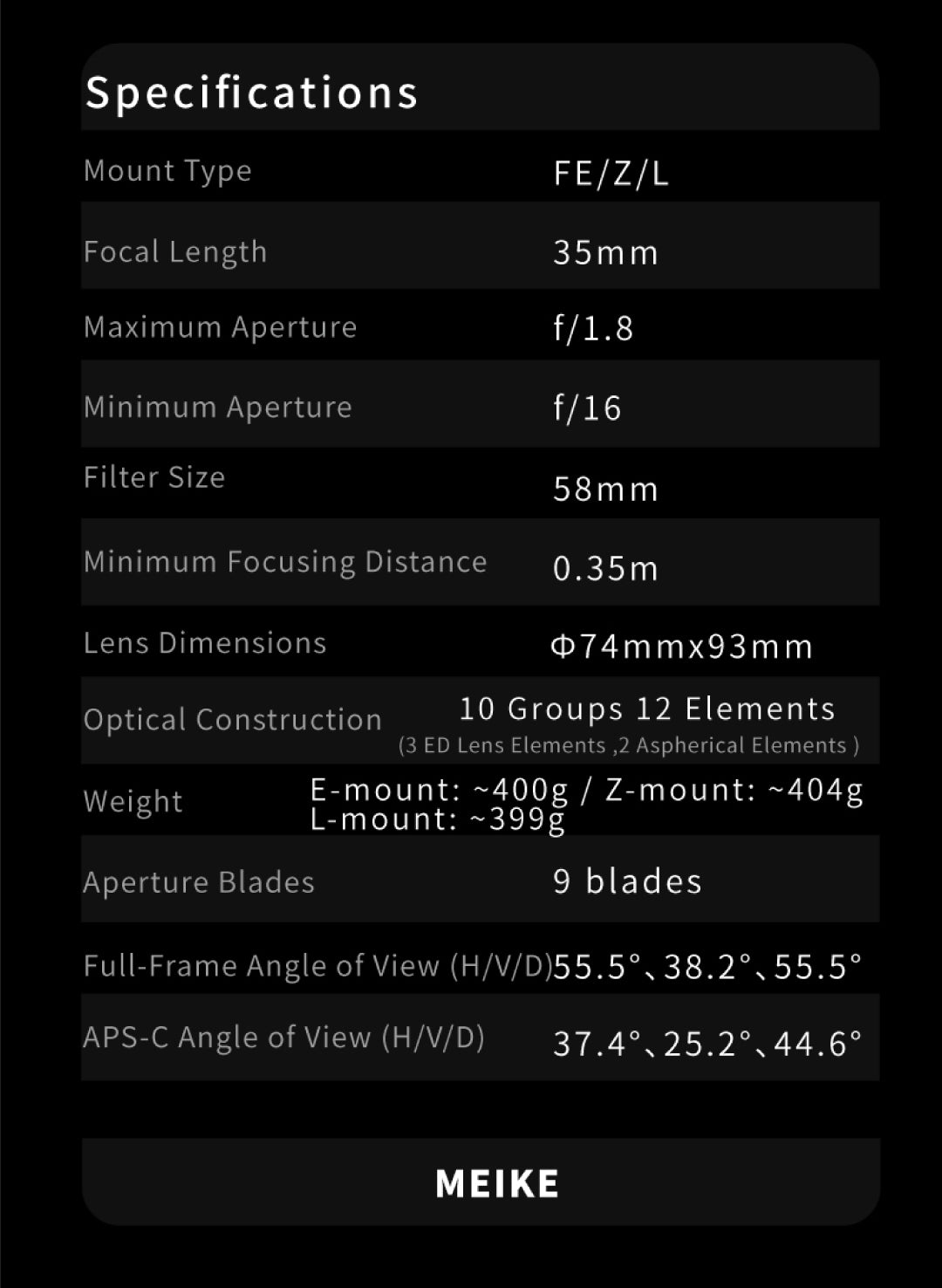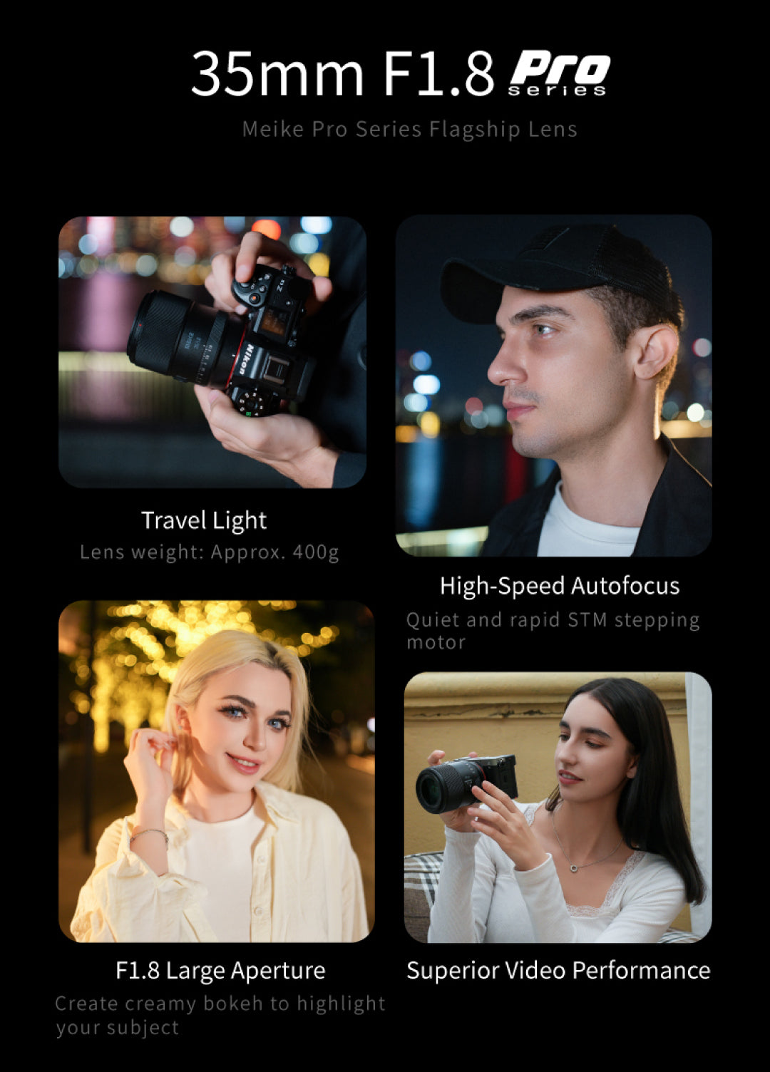Meike 35mm f1.8 Pro Full Frame Auto Focus STM Lens for Nikon Z Mount Cameras. Capture stunning images with the Meike 35mm f/1.8 STM Auto Focus Lens, designed specifically for Nikon full-frame cameras. This versatile prime lens offers a bright f/1.8 aperture, perfect for achieving beautiful bokeh and excelling in low-light conditions.