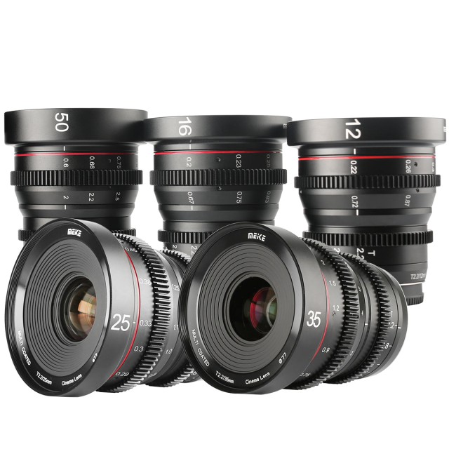 Meike T2.2 Cine lens Kit: 5 MFT lenses 12mm 25mm 35mm 50mm 85mm + Meike hard case for 6 lenses