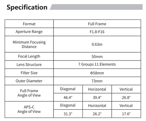 The brand new 50mm/F1.8 uses the newest optical structure, making it able to achieve a large aperture of F1.8 while maintaining miniaturization and lightweight. Multi-layer coating technology is used on both sides of the lens to restore more realistic colors. The lens is not easy to attach dust or stains, and can be easily wiped clean.