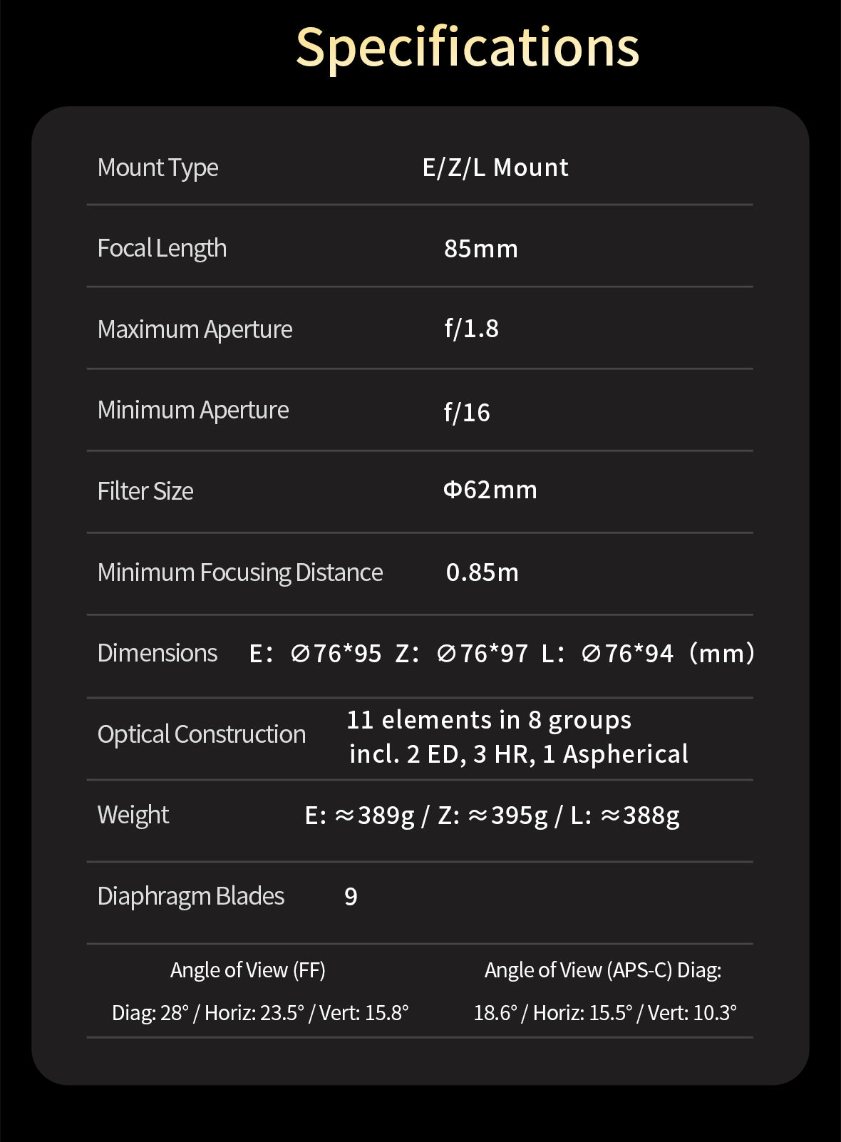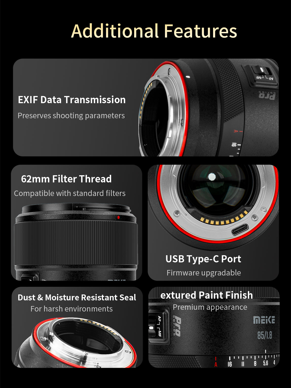 Equipped with an advanced STM (stepping motor) auto-focus system, this lens provides rapid, precise, and virtually silent focusing, making it perfect for capturing both stills and video. The 85mm focal length is renowned as an ideal choice for portraits, offering flattering compression and superb subject isolation. It's also excellent for fashion, events, and detailed close-ups. Compact yet powerful, the Meike 85mm f/1.8 Pro is a must-have for Fujifilm X-Mount photographers seeking superior image quality and creative control.