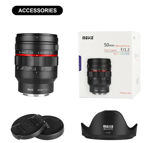 The Meike Full Frame 50mm F1.2 lens for Sony E mount delivers exceptional low-light performance and stunning bokeh, making it ideal for portrait and close-up photography.