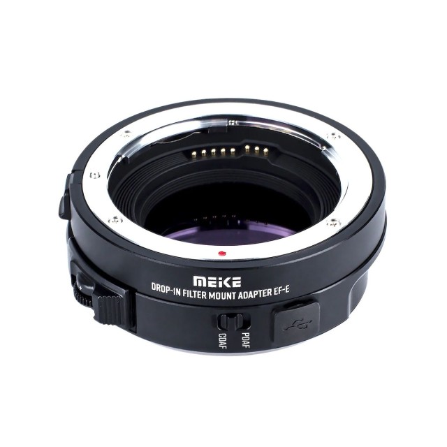 Drop-in filter mount adapter allwing to mount EF/EF-S lenses to Sony E mount camera, and echange drop-in filters. Supports AF (PDAF and CDAF modes).