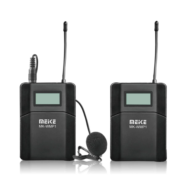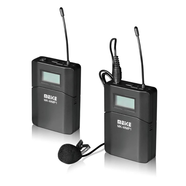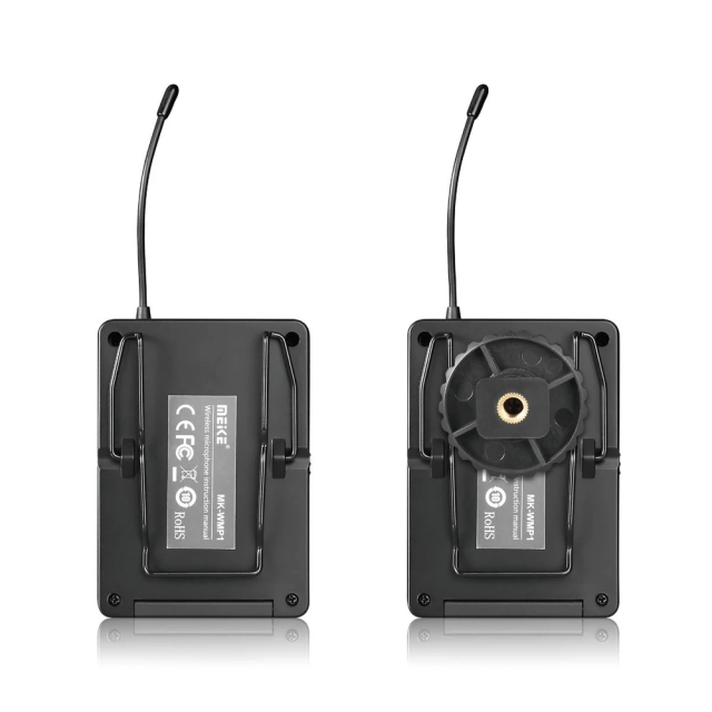 UHF wireless audio system with a range of approximately 70 m (line-of-sight) operating in the 638-648 MHz band (6 channels). The transmitter and receiver are powered by 2x AA batteries (not included) with a battery life of approx. 6+ hours, of course easy mounting on camera/DSLR/DSLM/phone (including reduction for flash socket). The package also includes a lapel microphone with 95 cm cable and 3.5mm jack connector, which can also be used with other devices. Transmitting power ≦10 dBm, receiver sensitivity 12 dB/3 uV, signal-to-noise ratio >80 dB.