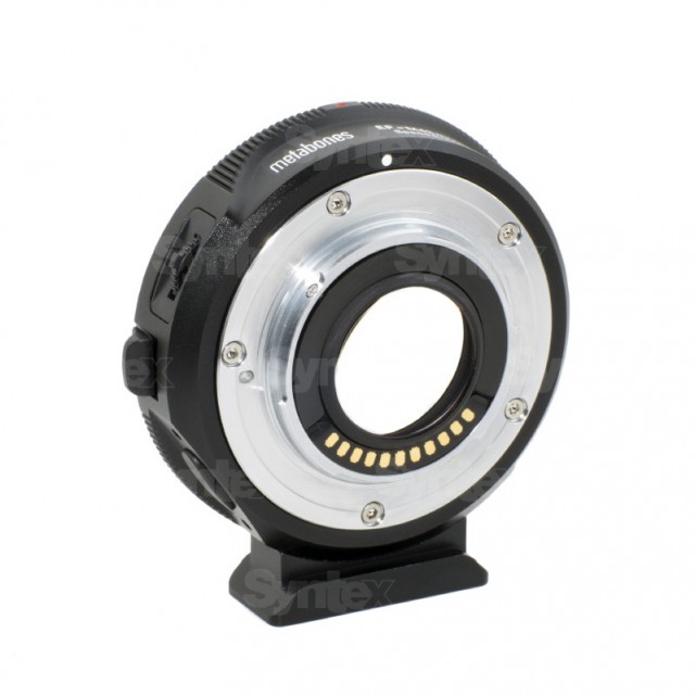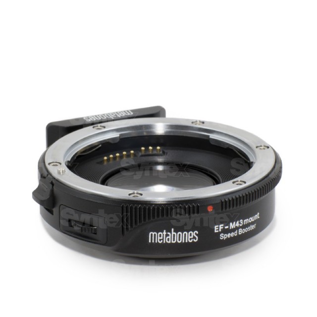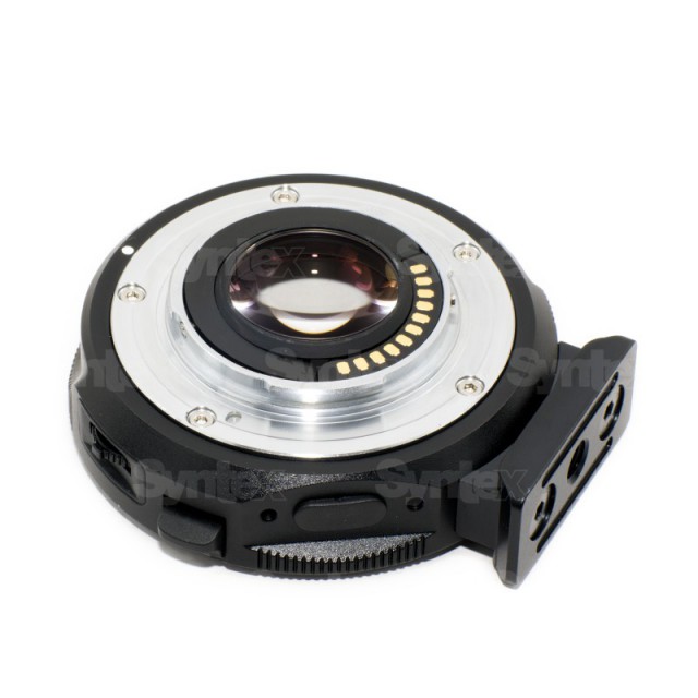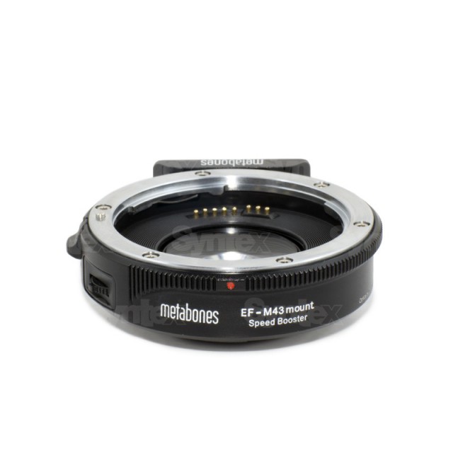 Canon EF to Micro-4/3 mount Speed Booster adapter makes lens 0.71x wider, increase maximum aperture by 1 stop, and increases MTF. The adapter features built-in electronics to control lens aperture by the controls on the camera body, and is also powered by the camera's body. The adapter is an ideal companion for Blackmagic Cinema Camera MFT or the mirrorless Panasonic GH4 models.