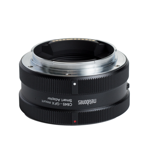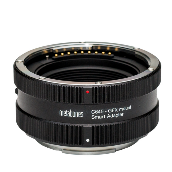 The Metabones Contax 645 to Fuji G-mount Smart Adapter provides autofocus, aperture control, and EXIF data support, enabling seamless compatibility for Contax C645 lenses on Fujifilm G-mount cameras.