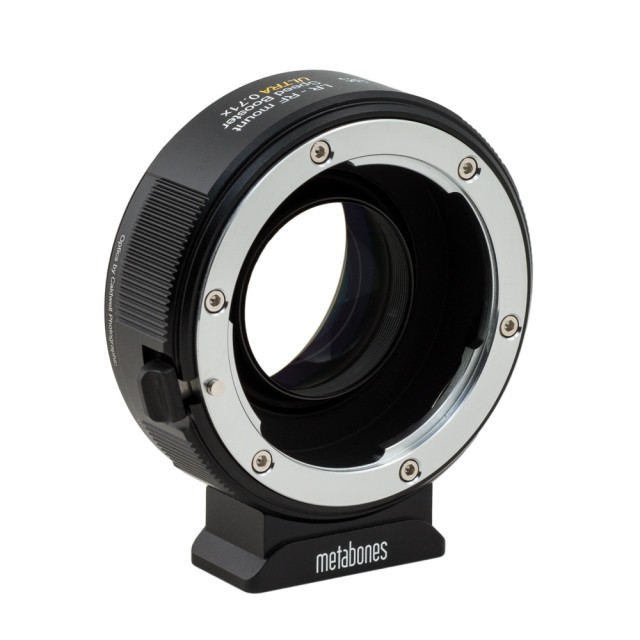 Like the revolutionary original Metabones Speed Booster announced in January 2013, the Speed Booster ULTRA has a magnification of 0.71x, and so it effectively reduces the crop factor of mirrorless cameras with DX-sized sensors, such as Sony E-mount and Fuji X-mount cameras, from 1.5x to 1.07x. However, the new ULTRA design makes very effective use of exotic materials at the furthest limit of glassmaking technology, and as a result is well corrected for use with virtually all full-frame SLR lenses regardless of exit pupil distance. Thus, the Speed Booster ULTRA performs extremely well with professional-grade f/2.8 zoom lenses such as the 24-70mm f/2.8 and 70-200mm f/2.8 zooms by Canon and Nikon to produce 17-50mm f/2.0 and 50-142mm f/2.0 high-speed zooms, respectively. Similarly, high-speed fixed focal length lenses such as a 50mm f/1.2 will be transformed into a 35.5mm f/0.9 lens with excellent contrast and resolution from the center all the way to the edges of the image. (More information can be found in the press release here)