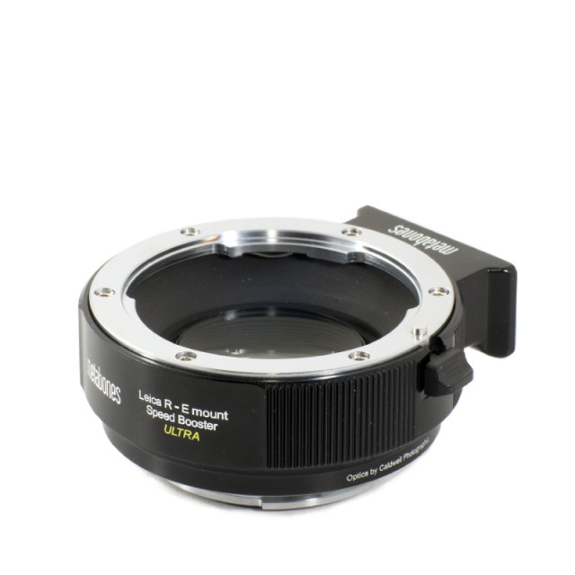 The Leica R Mount Lens to Sony E-Mount Camera Speed Booster ULTRA from Metabones improves upon the original Metabones Speed Booster with a 5 element/4 group optical design that incorporates ultra-high refractive index tantalum-based glass for improved sharpness and reduced distortion and vignetting. The Speed Booster ULTRA allows a full frame Leica R Mount lens to be mounted to an APS-C format E-Mount camera and in doing so, increases the angle of view and increases the maximum aperture by approximately one f/stop.