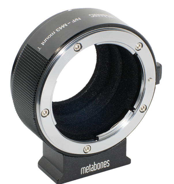 The Metabones Nikon F to Micro Four Thirds T Adapter III (Black Matt) enables mounting Nikon F lenses on MFT cameras with precision and durability. Featuring brass and aluminum construction, a flocked interior, and a detachable Arca-type tripod foot, it ensures a secure fit and infinity focus while supporting full manual operation.