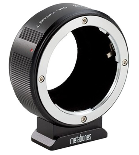 The Metabones Olympus OM to FUJIFILM X-Mount T Adapter II is a precision mechanical adapter that allows Olympus OM-mount lenses to be mounted on FUJIFILM X-mount cameras. Featuring durable aluminum and brass construction with a satin finish, it includes a removable Arca-type tripod foot and dust-resistant rubber gasket for reliable use.