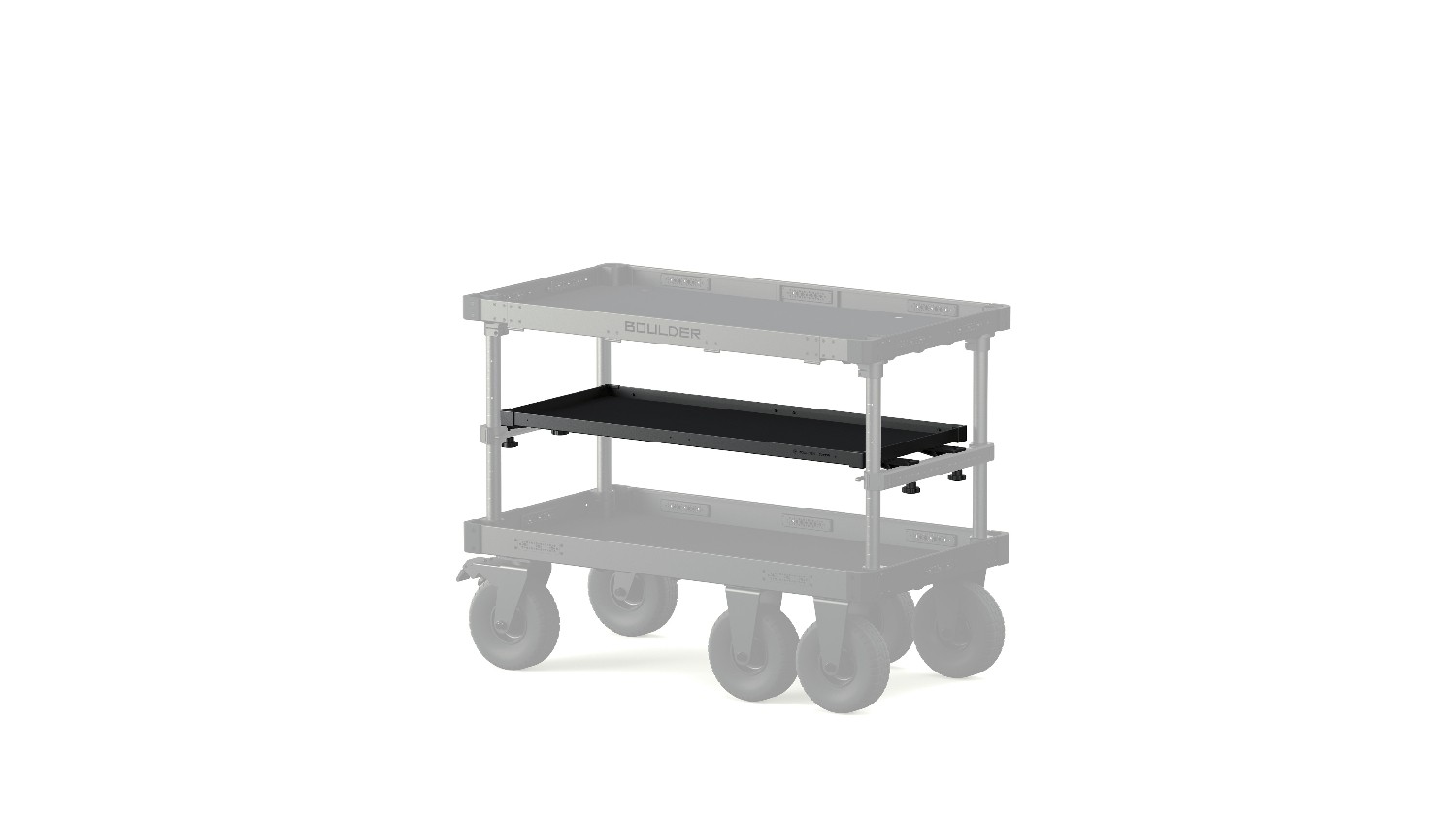 The Mid Level Tray for Boulder Camera Cart XL adds a versatile, height-adjustable storage surface to your camera cart, providing a durable aluminum shelf ideal for organizing tools, accessories, and cases while maximizing usable cart space.