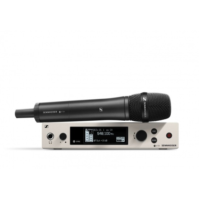 The ew 500 G4-965 is a top-of-the-line wireless condenser microphone for vocals. The SKM 500 G4-965 handheld transmitter with interchangeable head (cardioid/supercardioid characteristics) has charging contacts and, like the EM 500 G4 rack receiver, is equipped with twenty-one frequency groups with thirty-two directly accessible presets for immediate use.
