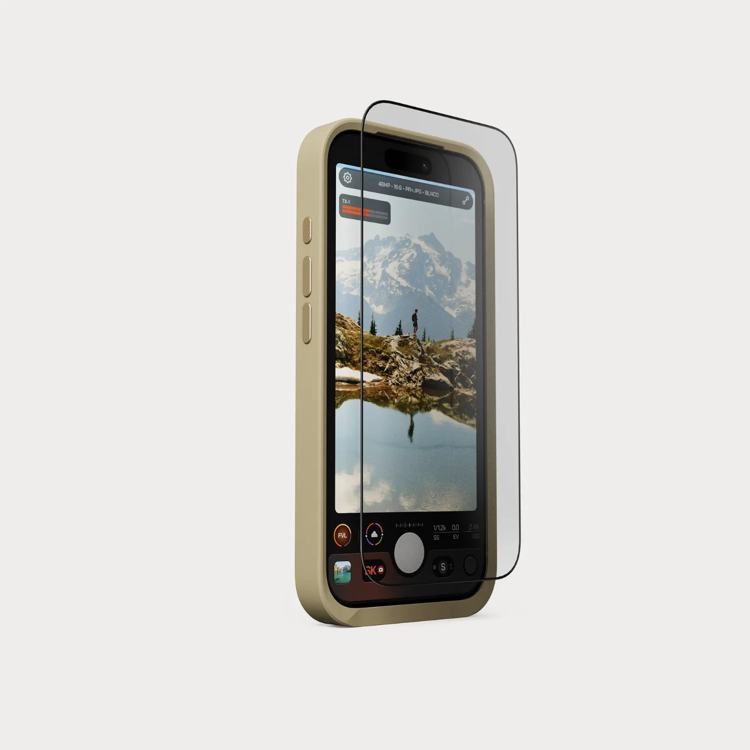 The Moment Glass Screen Protector is built to pair perfectly with your Moment Case — giving you seamless edge-to-edge protection without sacrificing clarity, responsiveness, or feel. Made from ion-strengthened glass and measuring just 0.3mm thin, it shields your screen from drops and scratches without adding bulk. A precision-cut fit ensures full compatibility with Dynamic Island, Face ID, front flash, and front-facing speakers.