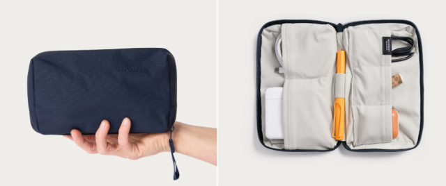 The Moment Everything Mini Tech Organizer in Navy is a compact, versatile pouch designed for creatives who like to pack light, keeping tech essentials organized, protected, and easy to access.