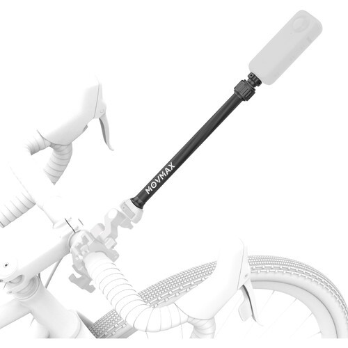 The MOVMAX Adjustable Selfie Stick is a compact two-section extender for action cameras, stretching from 0.8 to 1.3' (24.4–39.6 cm) with a 1/4"-20 screw mount and bottom thread for direct attachment to MOVMAX universal clamps, enabling secure mounting on bike handlebars, rods, or other rigs for dynamic POV videogr…
