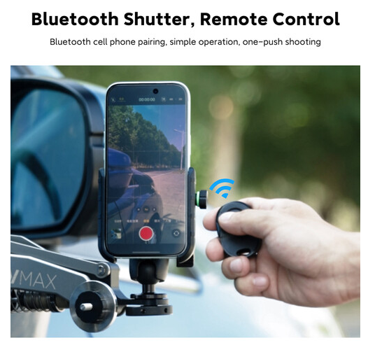 Elevate vehicle-based content creation with the MOVMAX Smartphone Clamp (Model 86-0039), a rugged, Blade Arm-specific mount that securely holds virtually any smartphone between 2.4 and 3.5 inches wide—perfect for iPhones, Androids, and compact devices—while enabling dynamic, hands-free filming from inside or outside the vehicle. The integrated 1-inch ball head with standard 1/4"-20 threading delivers 360-degree swivel and precise tilt control, allowing seamless switching between portrait and landscape orientations for optimal framing during fast-paced drives. Soft silicone padding lines the clamp jaws to prevent scratches and ensure a non-slip grip, even under vibration or sudden stops. A standout feature is the included Bluetooth remote control, which pairs instantly with your phone to trigger photos or start/stop video recording from the driver’s seat or passenger area—ideal for solo vloggers or safety-conscious creators. Built for durability and backed by a limited 1-year warranty, this clamp transforms the Blade Arm into a professional-grade mobile studio rig for automotive storytelling, travel vlogs, and action-packed sequences.