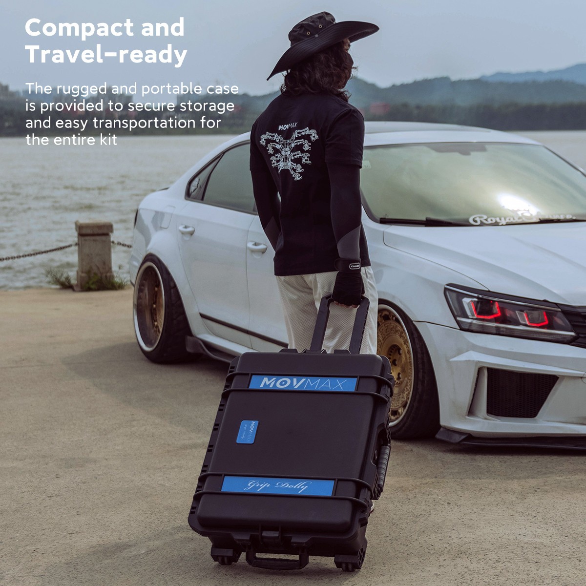 The MOVMAX Grip Dolly Pro Kit is a heavy-duty dolly system with a load capacity of 198 lbs. It includes a flat plate, 75/100/150mm ball adapters, a Mitchell plate adapter, and polymer track wheels for stable movement. The dolly features multiple 1/4"-20 and 3/8"-16 threads, middle and side supports, and comes with a flight case for easy transport and stor…