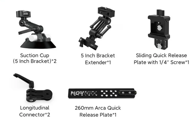 The MOVMAX Mamba Junior Car Mounting System is a high-performance solution for capturing dynamic car shots with precision and stability. Designed for professional filmmakers, this system securely mounts cameras to various vehicle surfaces, providing robust support even in high-speed or rough conditions. Its advanced shock-absorbing technology minimizes vibrations, ensuring smooth footage. The Mamba Junior features adjustable arms and versatile mounting options, making it adaptable to different camera setups and angles. Constructed from durable materials, it withstands the rigors of on-the-road filming, making it an essential tool for achieving cinematic car sequences.