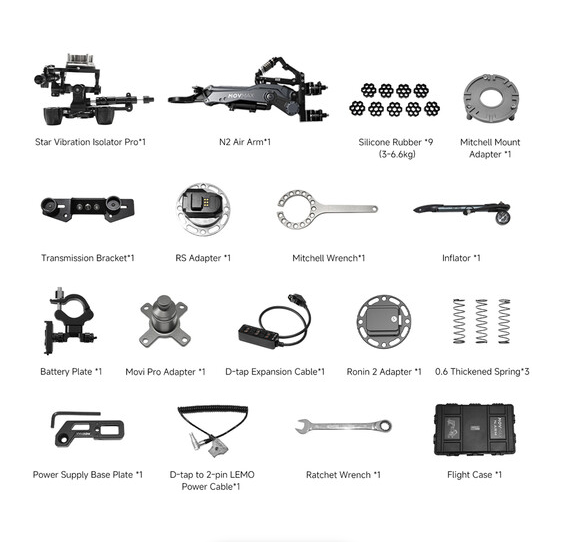 The N2 Arm 2024 is a high-end vehicle shock-absorption mount built for professional filmmakers who need rock-solid stability when shooting from moving cars, trucks, or off-road vehicles. Its semi-closed hydraulic air pump and damping system effectively eliminates both vertical and horizontal vibrations, while the 21-level adjustable damping knob allows precise fine-tuning of “head swing” for perfectly smooth footage in any driving condition. Constructed entirely from CNC-machined aluminum, it offers exceptional durability and a massive ≈40 kg (88 lb) load capacity, making it ideal for heavy cinema rigs, DJI Ronin series, FREEFLY MōVI Pro, and other professional gimbals. The system includes a Mitchell mount base with multiple adapters, a dual-battery V-mount/Ronin plate, bidirectional transmission bracket, and comes packed in a protective flight case for easy transport.