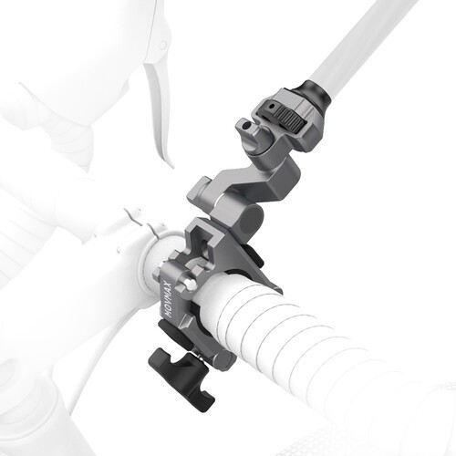 The MOVMAX Round Tube Universal C-Clamp adds a 1/4"-20 screw mount with independent pan, tilt, and roll joints to round tubes or handlebars, enabling flexible action camera or selfie stick mounting on bicycles, vehicles, or rigs like the Blade Arm, with compact 4x3x2" dimensions and 1 lb weight for versatile videography support.