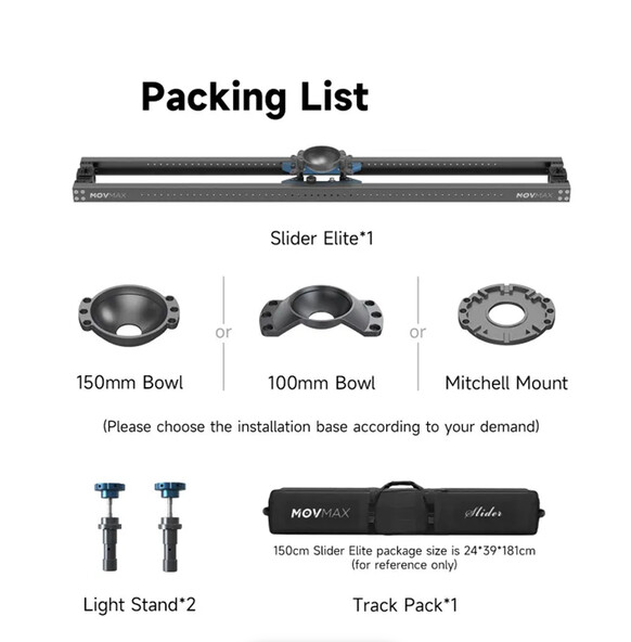The MOVMAX Camera Slider Elite 82" is a professional-grade, heavy-duty aluminum camera slider designed for ultra-smooth, quiet sliding shots. With an impressive 82.6" travel distance and a robust friction-based sliding system, it supports up to 55.1 lb (25 kg) payloads via its integrated 100mm bowl mount carriage. Ideal for cinematic tracking shots, it includes brake and damper control knobs, two light stand adapters with 5/8" receivers, and a protective carry case for easy transport.