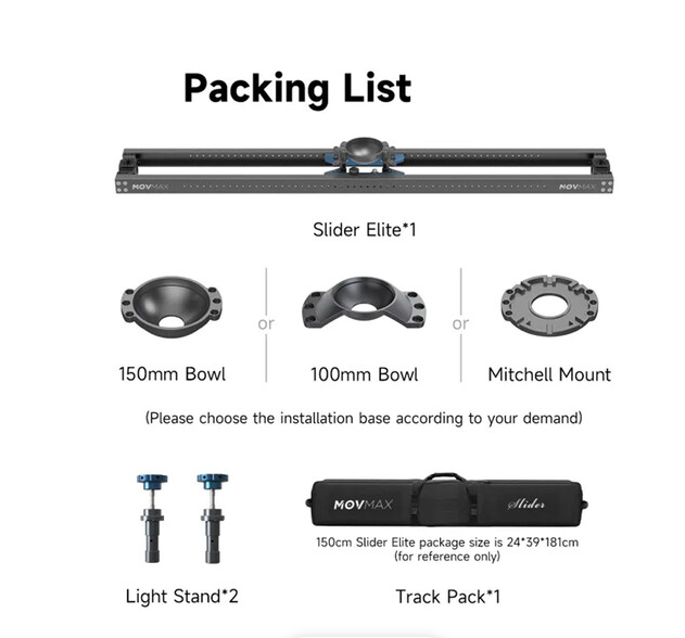 The MOVMAX Slider Elite 47" is a heavy-duty aluminum camera slider with a 47.2" travel distance and Mitchell mount carriage, supporting up to 55.1 lb loads via a smooth, friction-based manual sliding system with brake and damper controls, and includes two 5/8" light stand adapters and a carry case for professional…